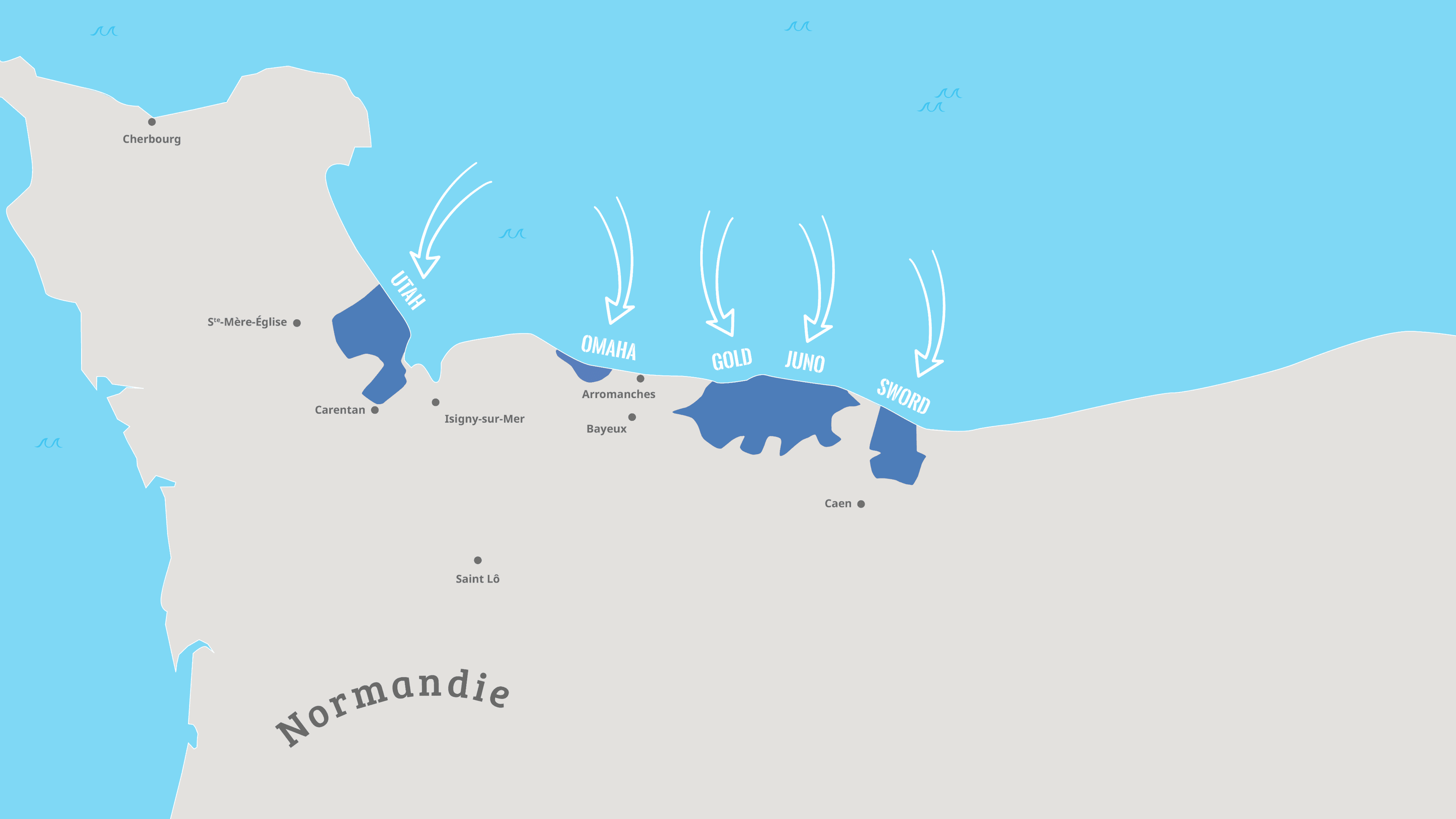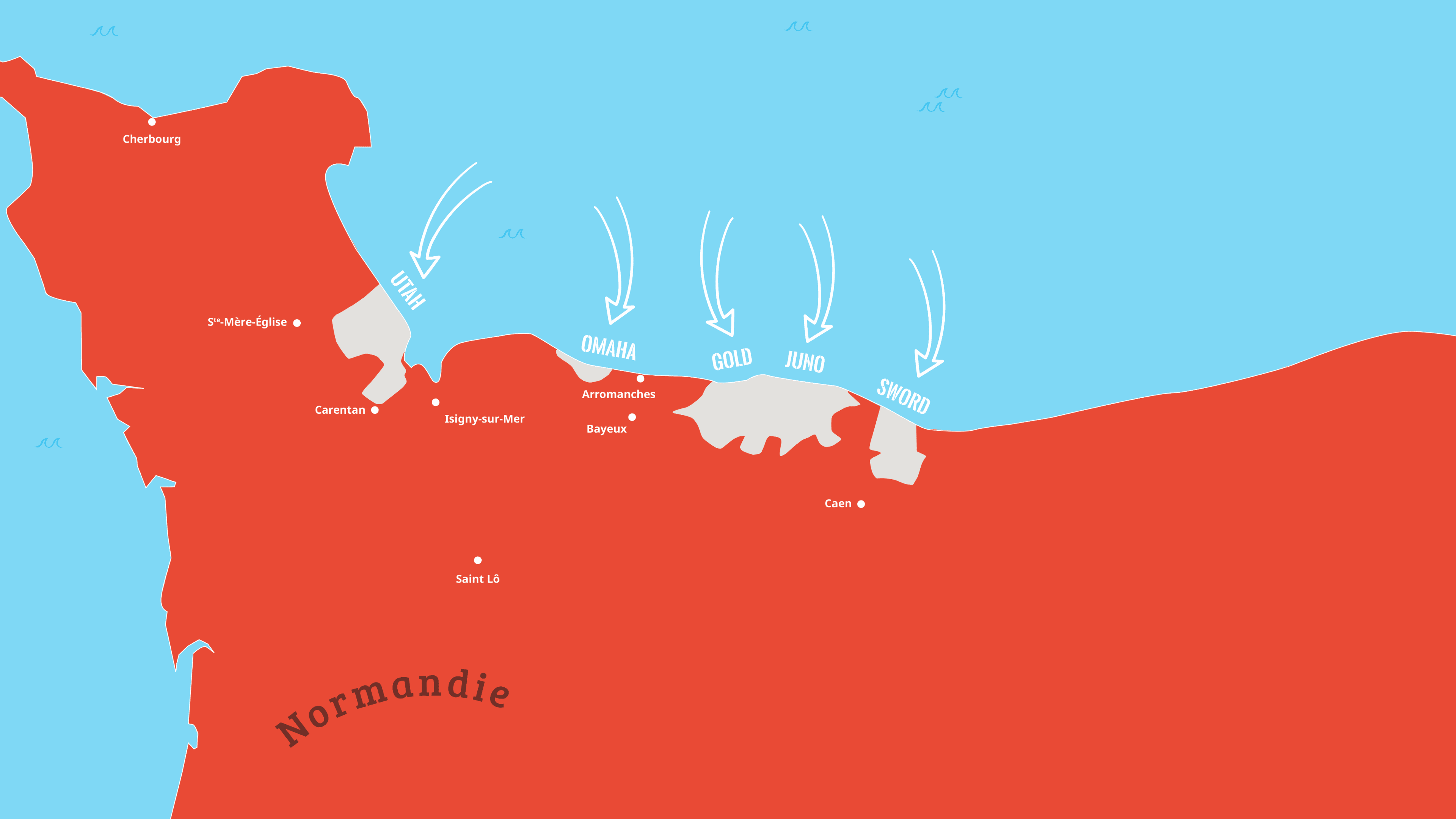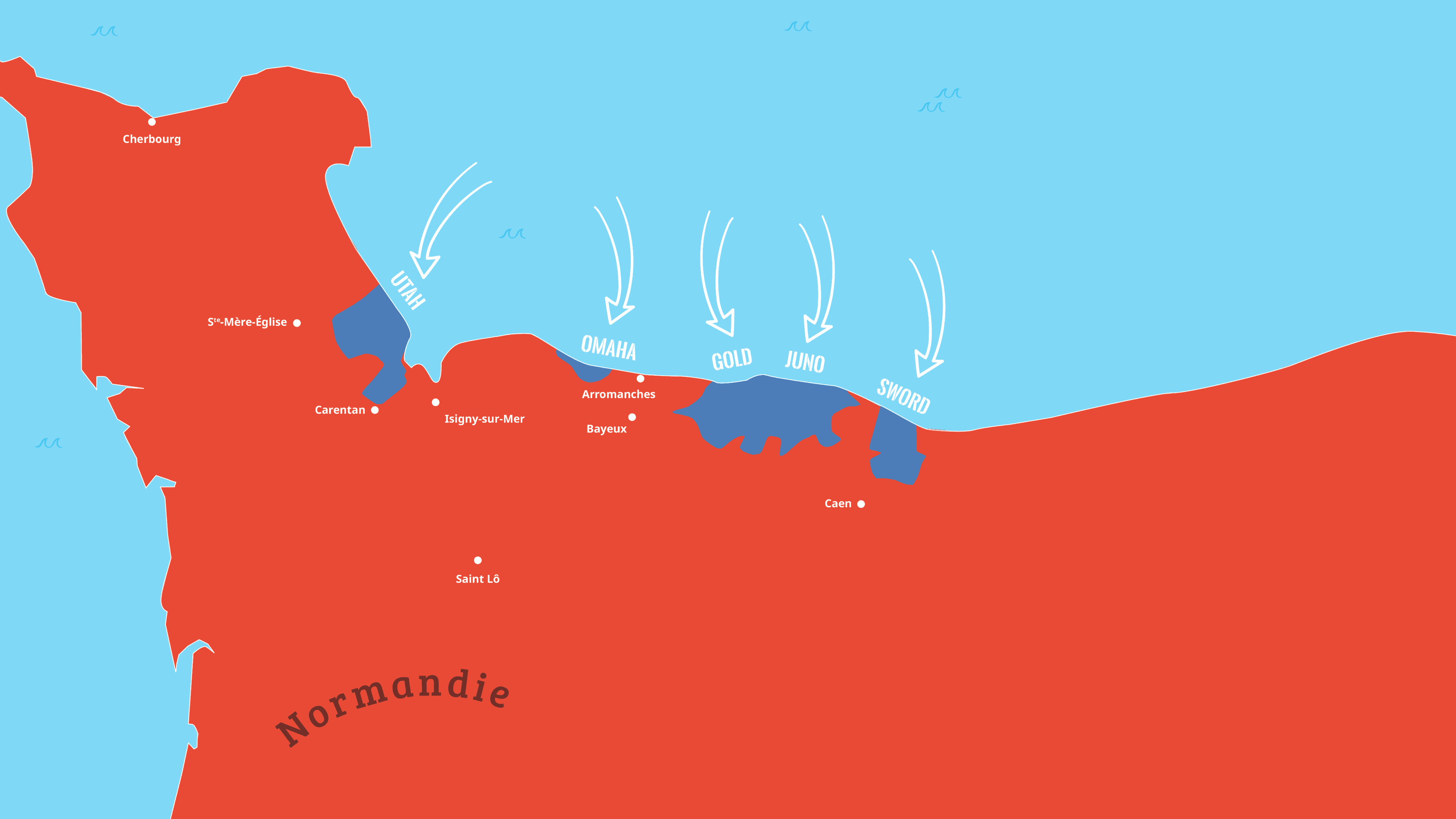 Fais défiler les cartes à l’aide de ces boutons pour revivre les étapes du Débarquement.
