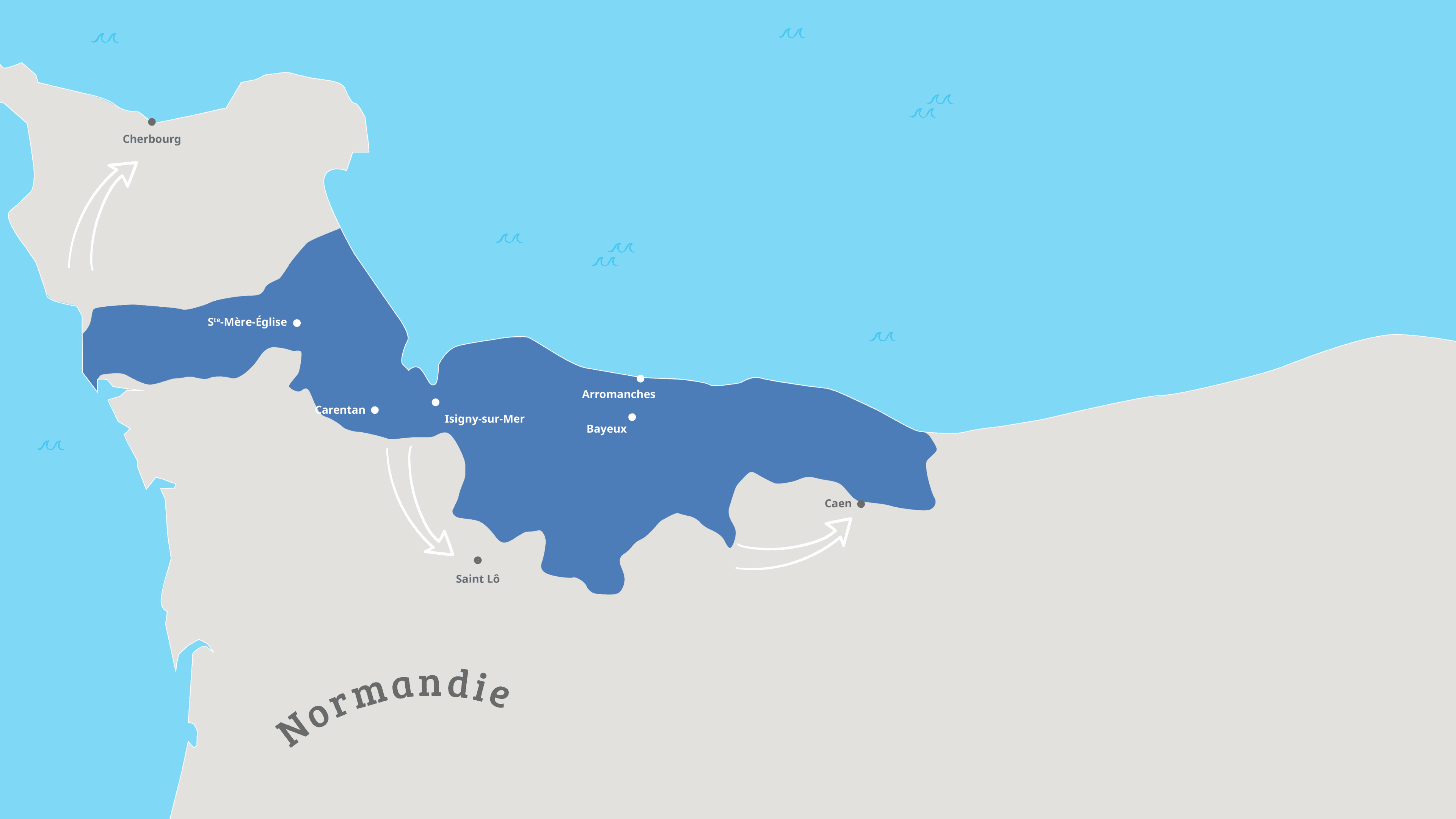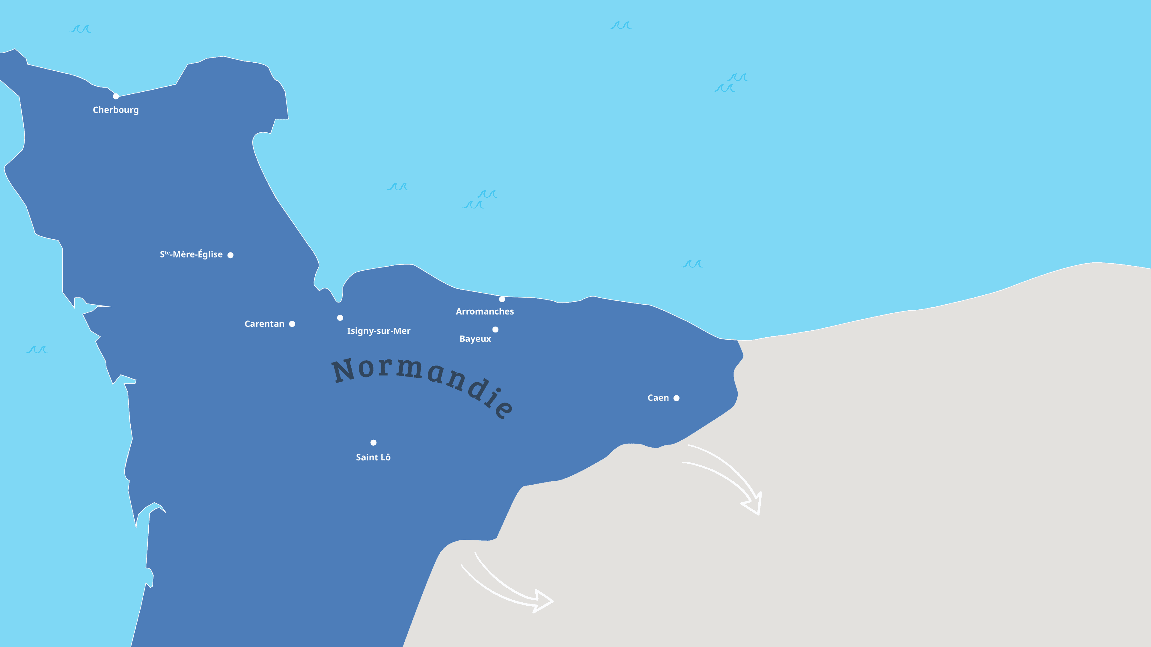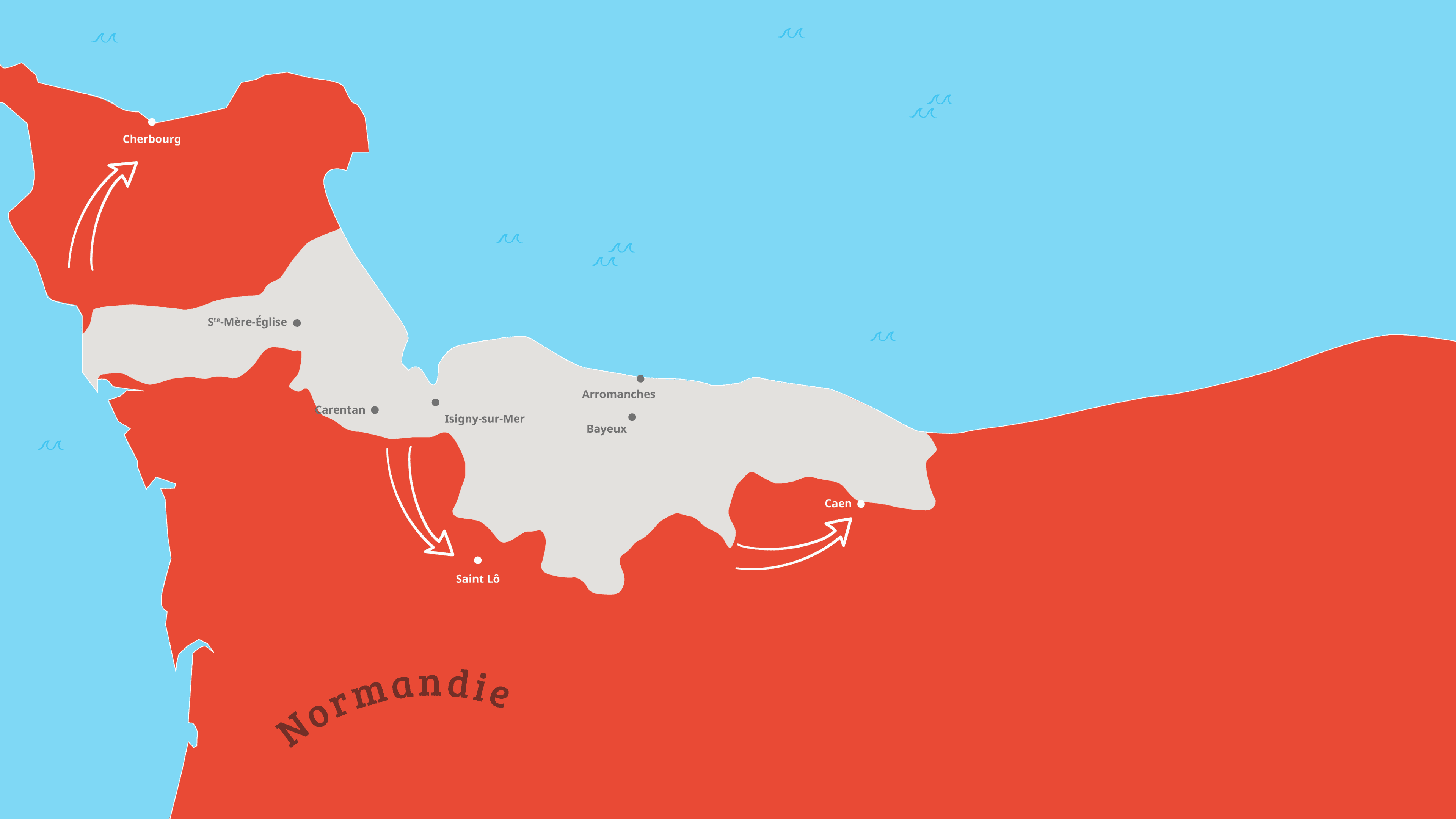 Fais défiler les cartes à l’aide de ces boutons pour revivre les étapes du Débarquement.