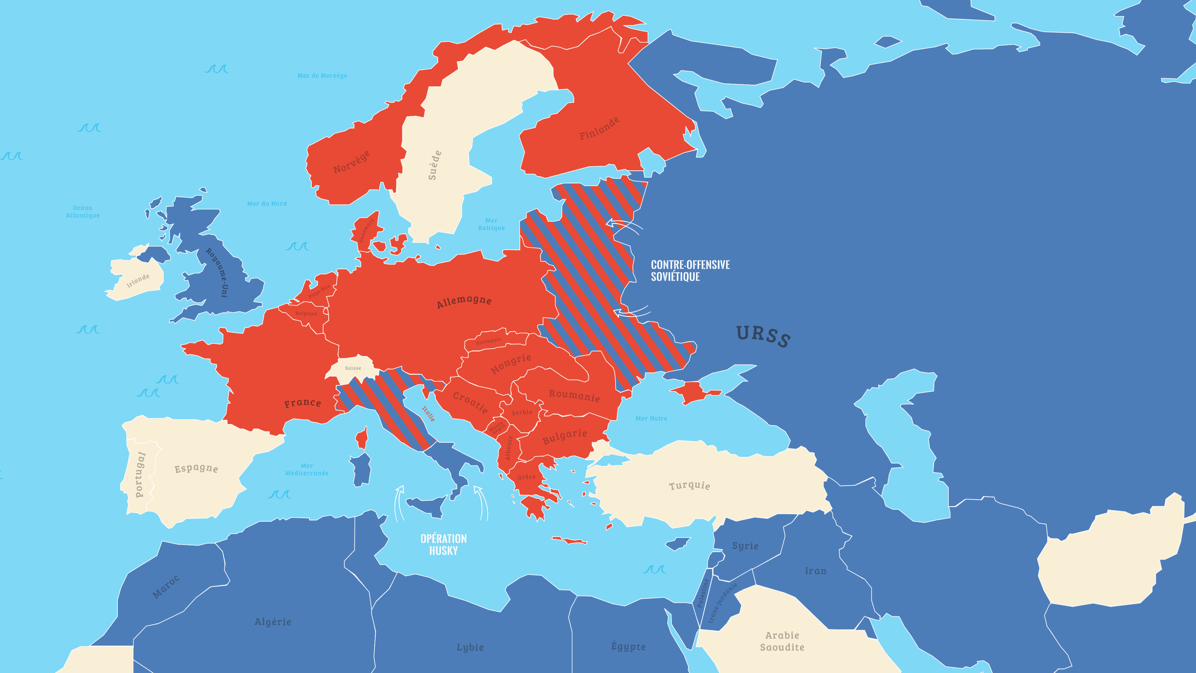 À travers ces cartes, tu vas découvrir tout ce qui s’est passé avant, pendant et après le débarquement du 6 juin 1944, en Normandie. Qui a organisé cette opération ? Quelles troupes y ont participé ? Quelle stratégie a été choisie ? Fais défiler les cartes et clique sur les personnages pour en savoir plus. Prêt à revivre cet incroyable événement ?
